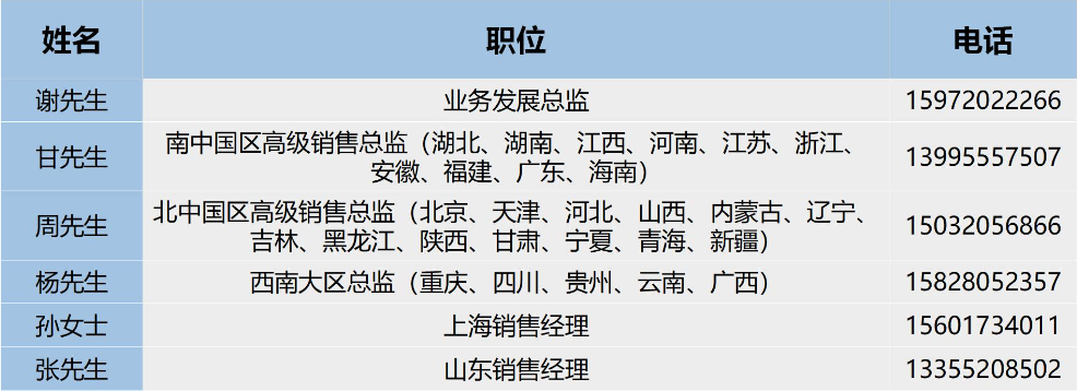 各地负责人联系方式: