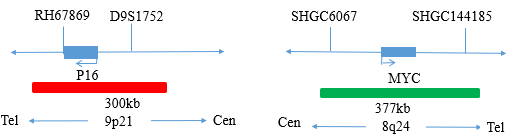 MYC/P16/CEP9 三色探针、P16/CEP9 双色探针
