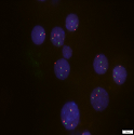 急性髓系白血病M2b形态学和免疫表型表明,细胞核浆发育不平衡现象实际是胞核,胞质的多种蛋白形成紊乱造成的。有研究发现AML1/ETO与这种蛋白紊乱的现象有联系。该研究还发现,基因水平的异常比细胞水平的异常出现的更早、更广泛,因此,基因检测在AML1/ETO阳性急性髓系白血病中非常重要。美国国立综合癌症网络NCCN肿瘤临床实践指南推荐FISH作为AML1/ETO检测方法。