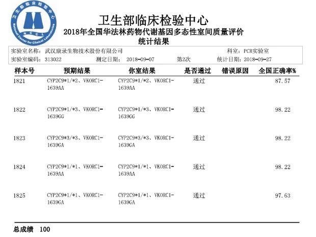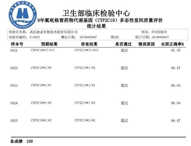 热烈祝贺武汉taptap,taptap官方网站,taptap登录入口技术股份有限公司(以下简称“taptap,taptap官方网站,taptap登录入口”)在2018年NCCL第二次室间质评项目中,斩获两项满分!检测项目包括氯吡格雷和华法林药物代谢基因多态性检测室间质评。