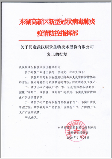 复工复产后,我司仍会保持疫情前的工作状态,正常研发、生产、销售检测试剂及提供各项检测服务,将为客户提供更好的服务。