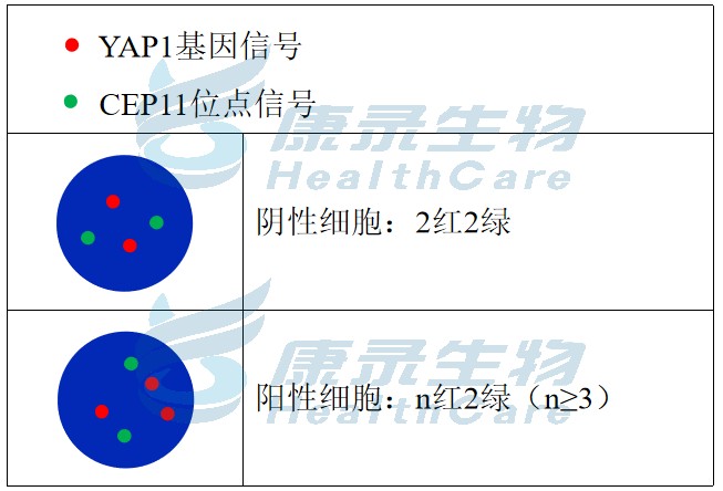 YAP1基因橘红色探针;CEP11绿色探针