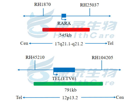 RARA全长橘红色探针;ETV6全长绿色探针